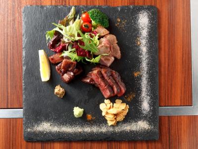 地元客で賑わう店どんとこでは、広島牛をはじめ国産ブランド牛のステーキが楽しめる。30席しかないお店で、1日30食頼まれる事もしばしばあるという極上の牛ヒレステーキ。その理由は1枚焼くのに1時間近くじっくり火入れをして極限まで柔らかく焼くその「火入れの極意」にある。上質なブランド牛を最先端の調理法でご提供。